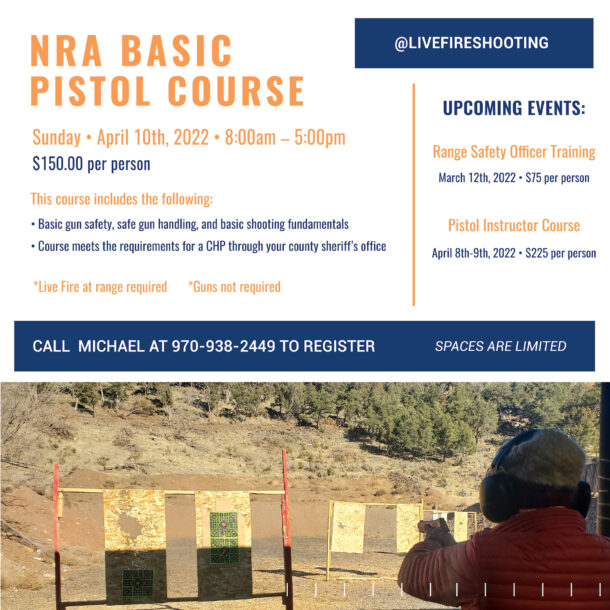 *Upon successful completion of course, the participant will leave with an NRA Certificate.*